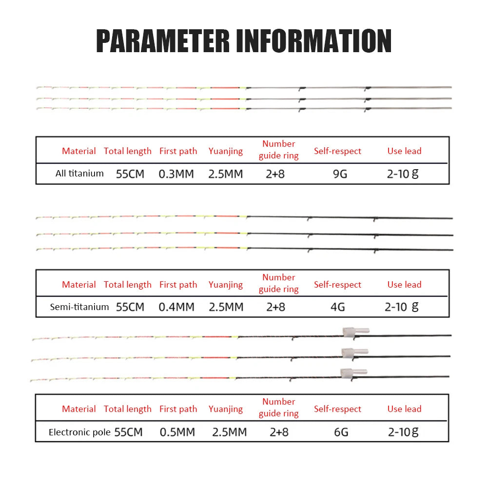 55cm Half Full Titanium Alloy Raft Tip Repair Refit Replacement LED Fishing Rod Tip Fishing Tackle Pole Accessories