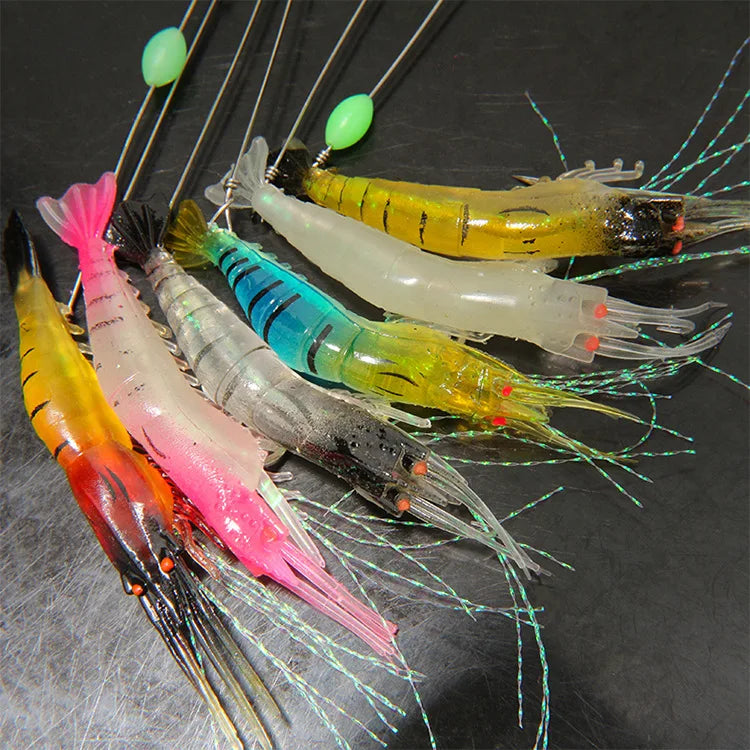9cm 7g Luminous Fake Shrimp Soft Silicone Artificial Bait with Bead Swivels hook for fishing Sabiki Rig Fishing Tackle Sea