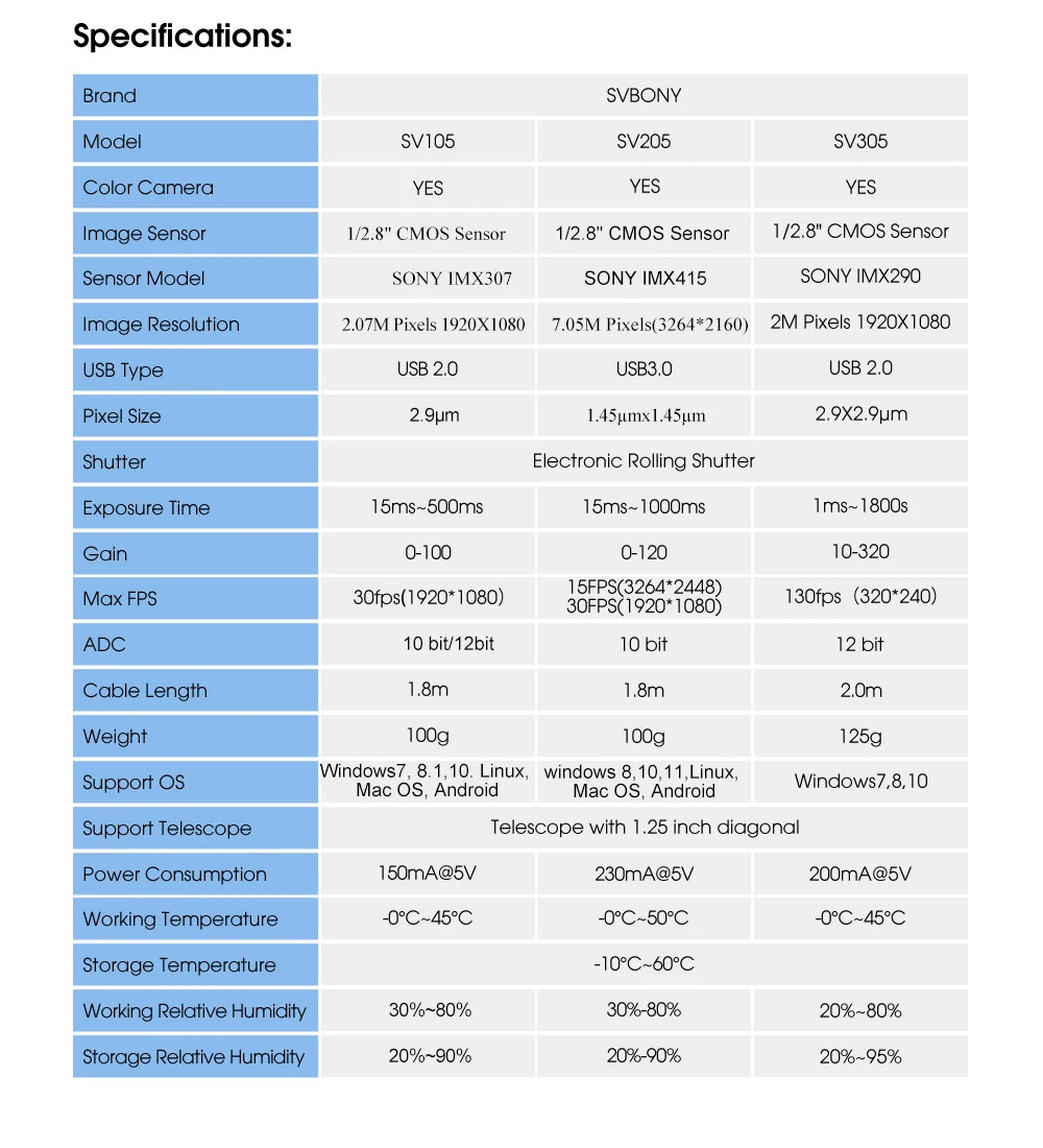 Plug and play, easy to use. SV105 with 2 USB connectors ensures the fluently night sky observing. If the power is not stable, then connect the sub-USB connector to your computer or power bank, and it will transport double electric current to make sure the SV105 camera work well with enough electric power.