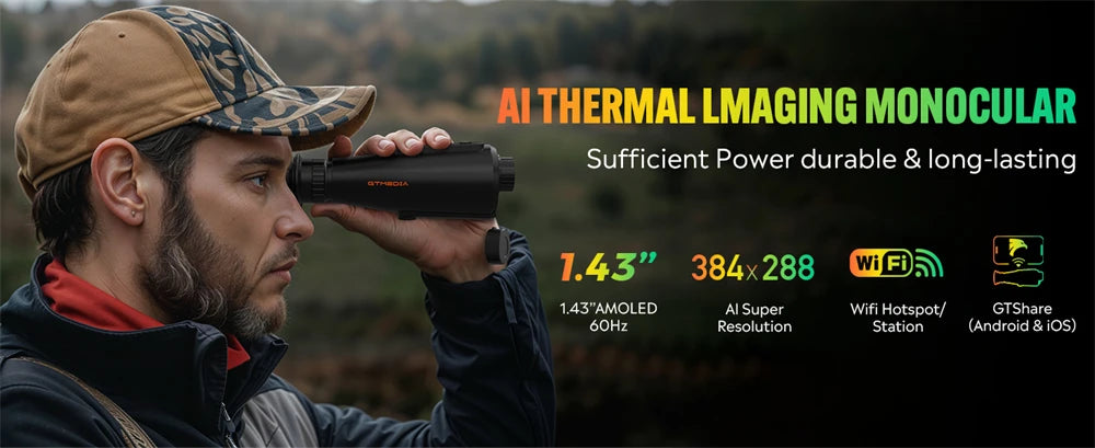 GTGUARD Ai15 Night Vision Goggles Outdoor Detector Handheld Monocular IR Thermal Imaging Telescope AI Super-resolution 384*288HD