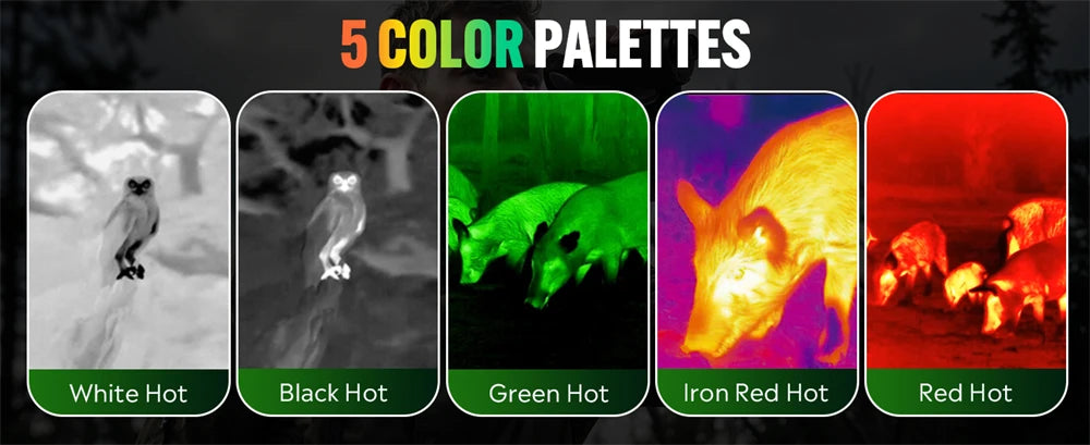 4.COLOR PALETTES: WHITE HOT,BLACK HOT,IRON RED HOT,RED HOT,GREEN HOT