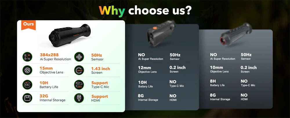 1.Hawkeye Ai15 has a high-definition sensor resolution 256*192(12µm),Lens 10mm/15mm