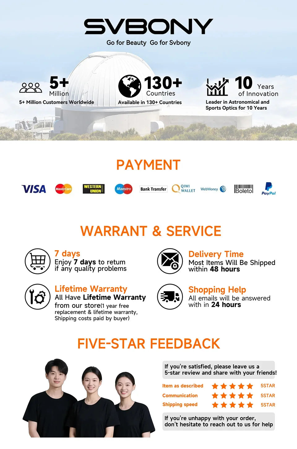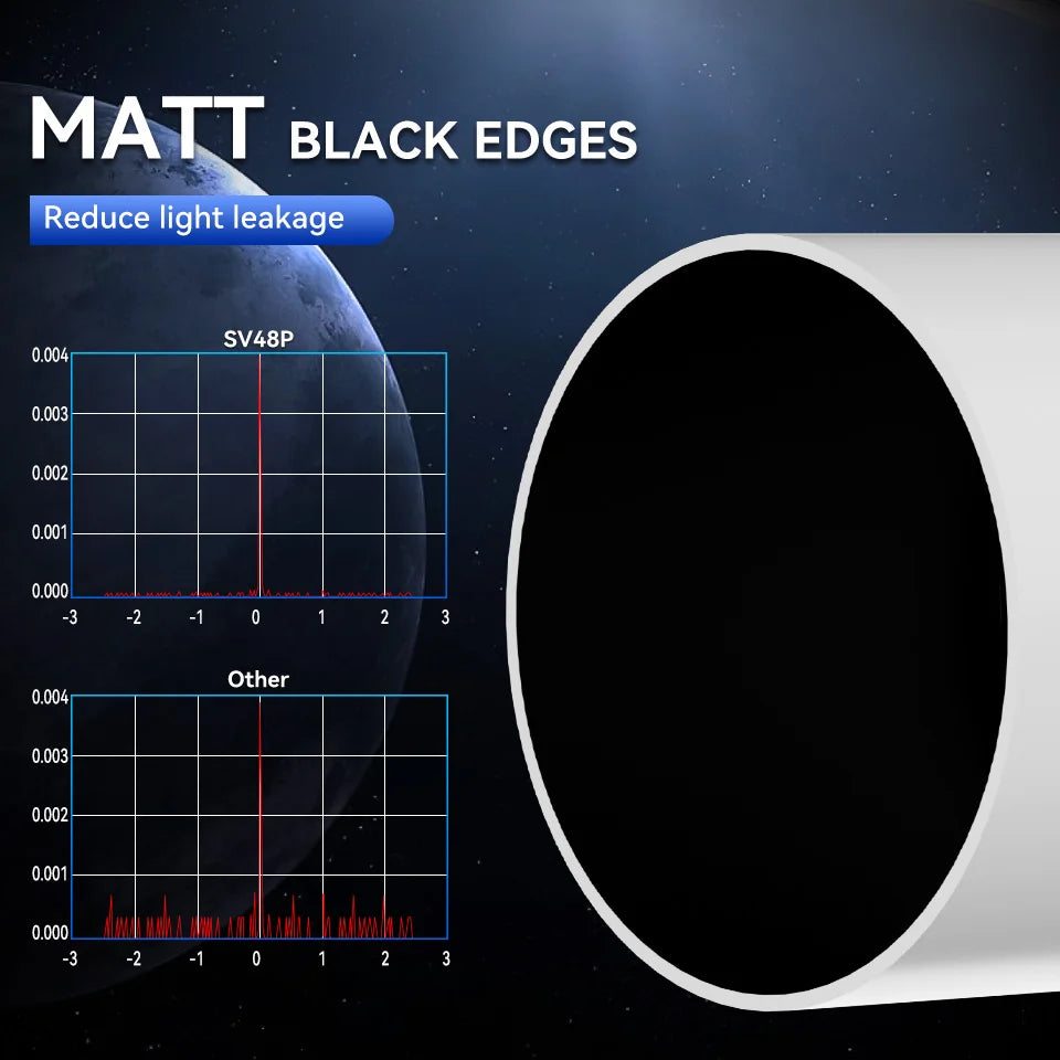 The SV48P 102mm f/6.5 Astronomical Telescope has outstanding optics, high-quality mechanical components. Fitted with achromatic glass for good edge-to-edge viewing, fully multi green coated lens maximize light transmission eliminating false color. The 2.5inch Double speed focuser, for smooth operation, great feel and precise adjustability. This is a good telescope provides for astrophotography visual observers or nature watchers.