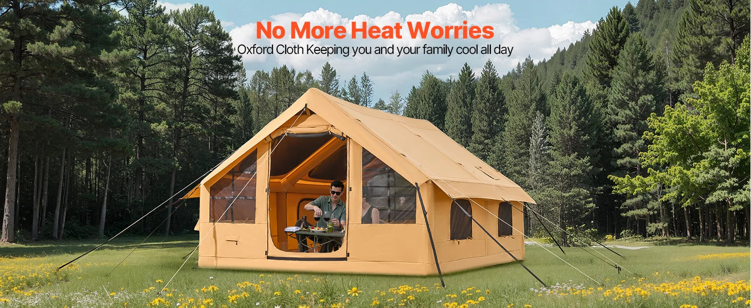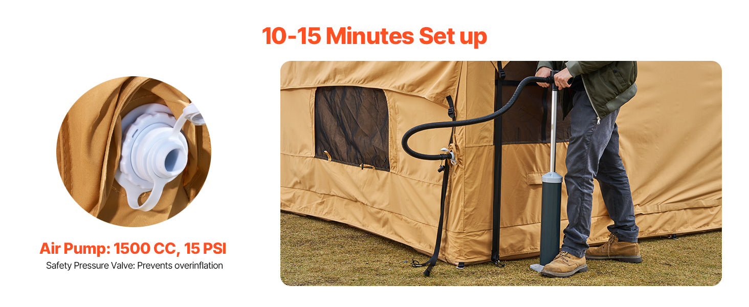 VEVOR Inflatable Tents for Camping Easy Setup Blow up Tent with Hand Pump Glamping Tent with Skylight Stove Jack & Mesh Windows