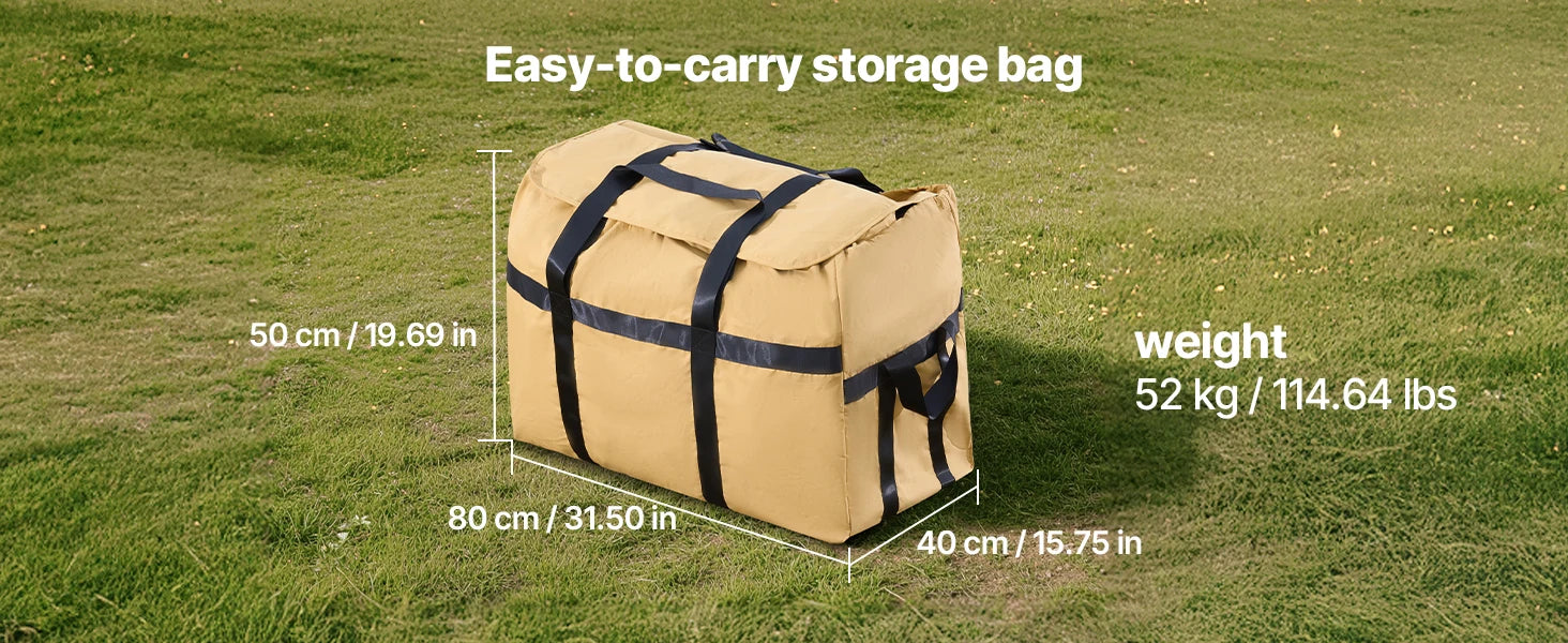 This inflatable camping tent offers 129 sq.ft. of space with 2 skylights for extra comfort. Set up in 10-15 minutes with the high-pressure pump. The Oxford fabric canopy provides sun and water protection, while the polyester ensures breathability. Its easy-fold design makes transport hassle-free!