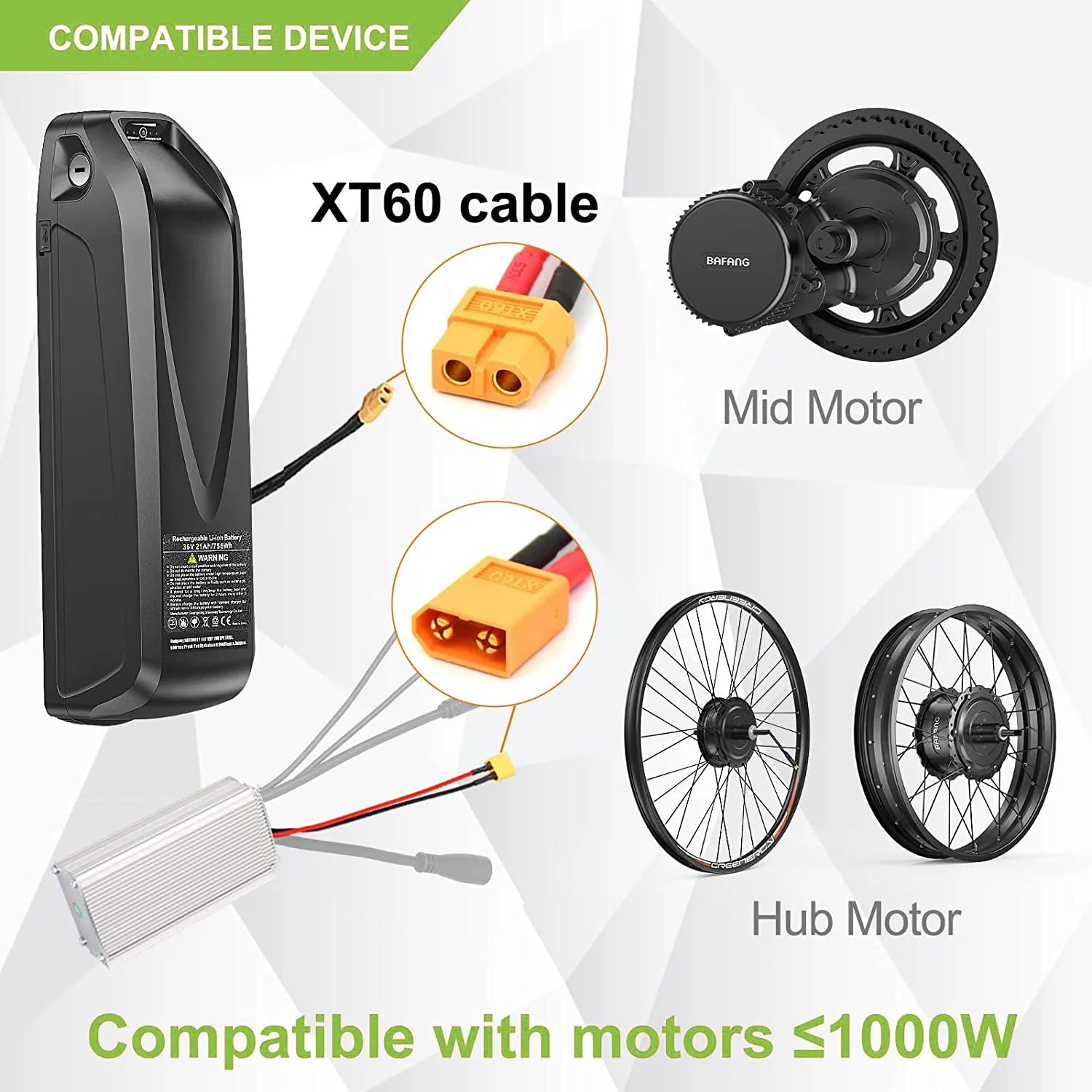 PRODUCT PARAMETER : The 17.5Ah /18Ah/19.2Ah/ 20Ah /21Ah/25Ah Shark Battery is compatible with 500W 750W 1000W electirc bike motor . The max constant discharge current is 30A .Charger : 54.6V 4A , Discharge : XT60 Female Port