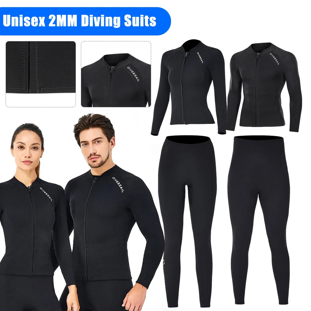2MM Neoprene Diving Suit Snorkeling Surfing Swimsuit Cold-proof Warm Top Pants Long Sleeve Split Body Jacket Swimwear For Unisex