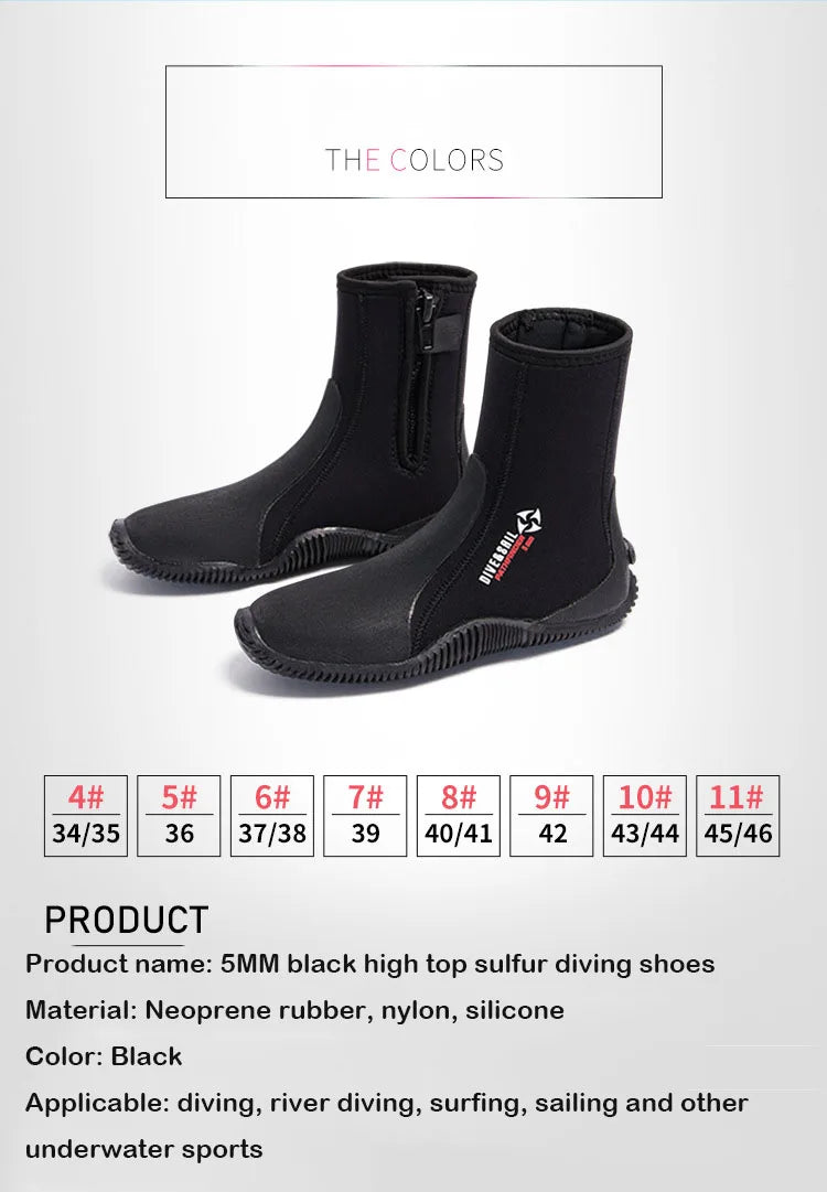 Oulylan Premium Neoprene Diving Boot 5m Water Shoes Wetsuit Booties With Anti-Slip Rubber Sole Zipper For Surf Scuba 1 Pair