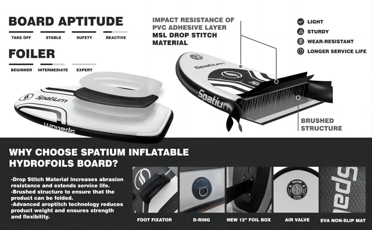 Spatium Hydrofoil Board for Surfing with Hydrofoil Accessories, Fix Kit Wing Foil Board Surf Hydrofoil Surfboard Gray