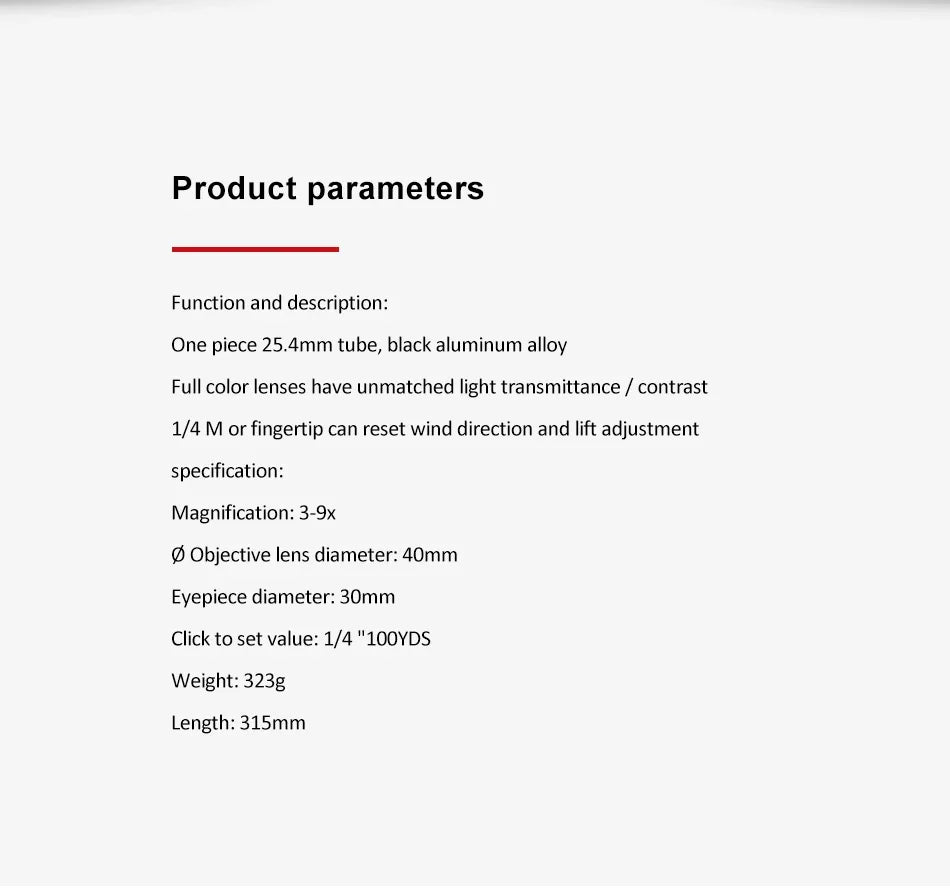 3-9X40 Hunting Deer Air Rifle Scope Wire Rangefinder Reticle Crossbow Mil Dot Reticle Riflescope Optical Sights