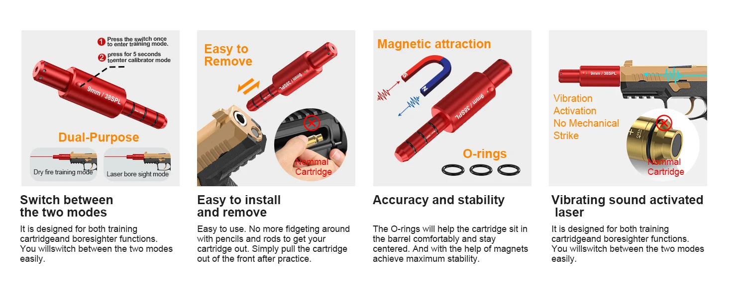 9MM 38SPL multifunctional magnetic red green light trainer, dual-purpose for training and calibration