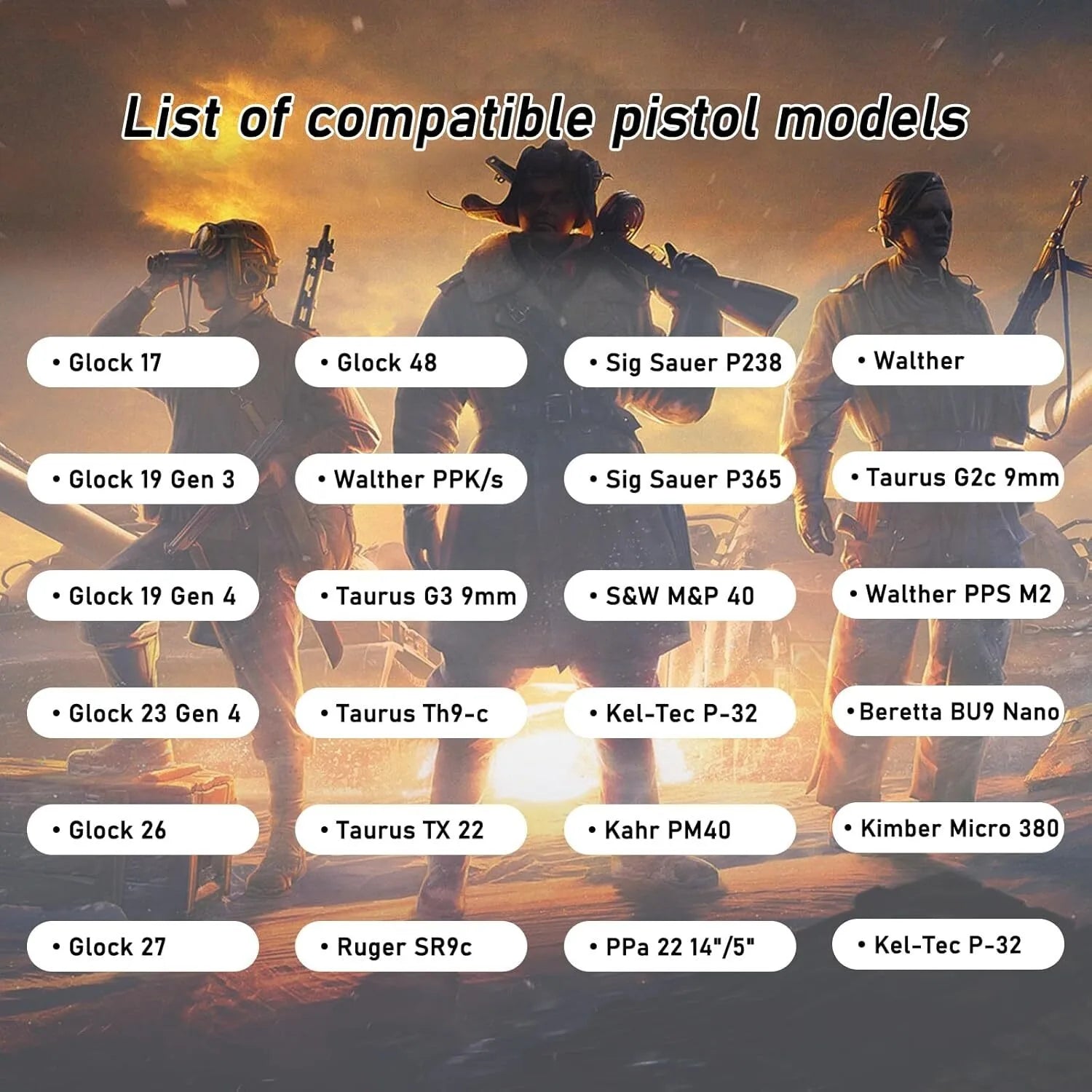 【Fits Most Pistol Sizes】-Suitable for small and compact handguns. Fits Glock 19,17 26, 42, 43x; Taurus G2C, G3C; Sig Sauer P238, P320, P365, P938 etc. (Note, does not fit pistols with lasers or other attachments).