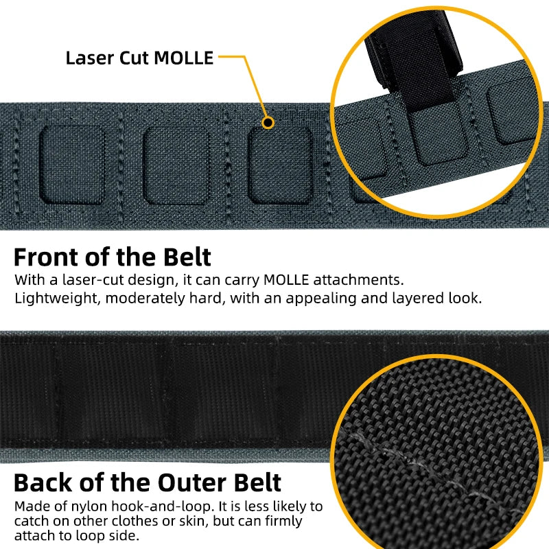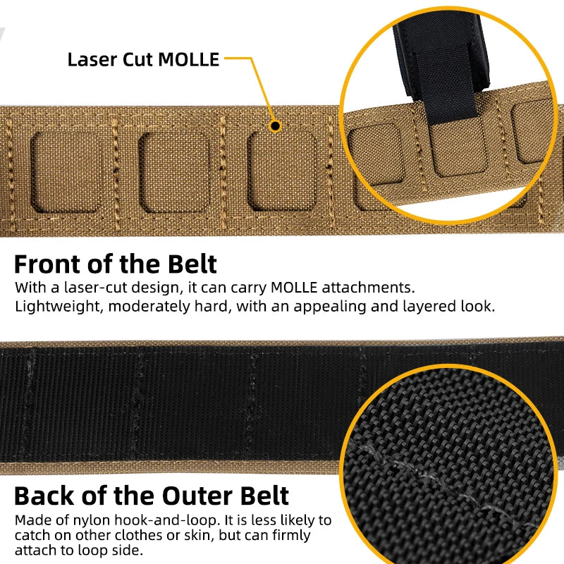 The molle adjustment position has been adjusted to the front of the belt, it is more convenient to adjust the size of the belt.
