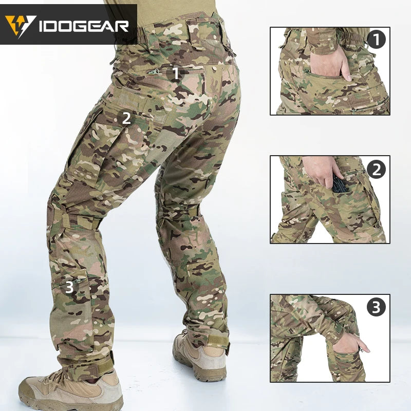 IDOGEAR Combat UFS Pants Tactical Pants w/ Knee Pads Camo Trousers Airsoft
