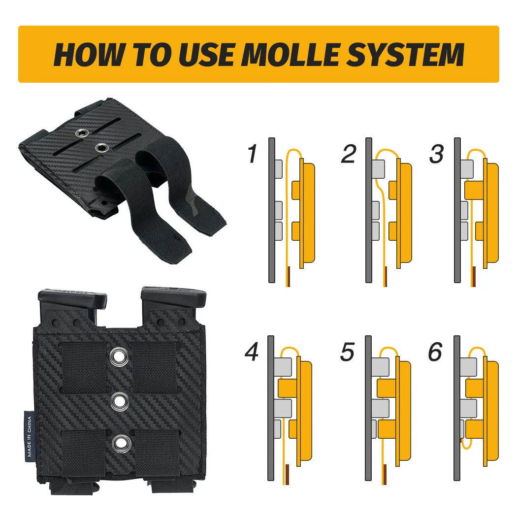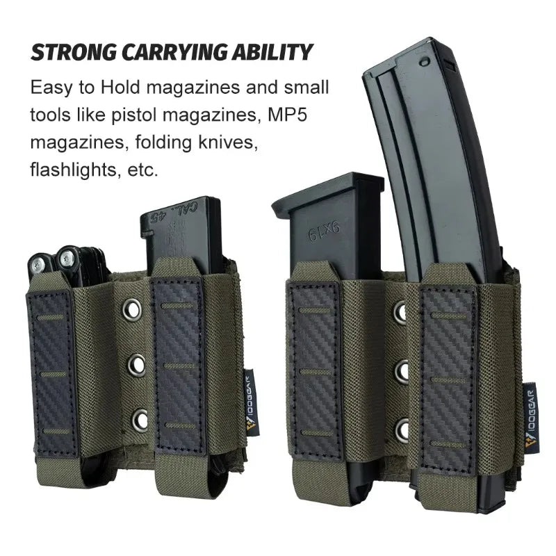 IDOGEAR Tactical Pouch Carbon Fiber AntiSlip Hollow Out Quick Drain Lightweight 9mm Double MOLLE Mounting Durable 2pcs 3590