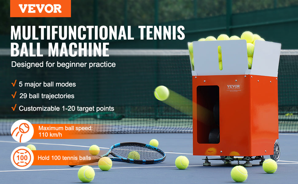 VEVOR Tennis Ball Machine Automatic Portable Tennis Ball Launcher 100 Balls Tennis Training Practice Thrower Multi-Mode Drills