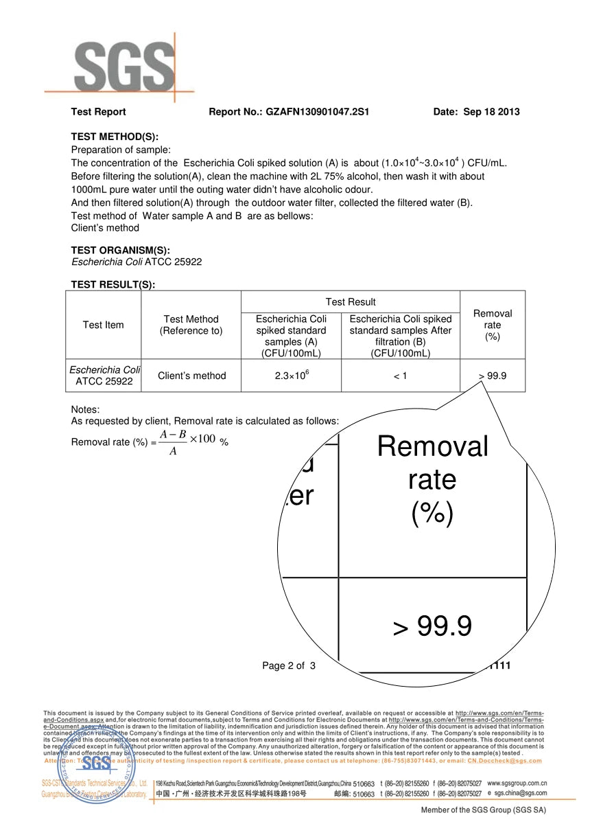 4. Reliable filtering result: 0.1 micron membrane ensures 99.999999% removal rate of bacteria. TUV and SGS testing reports.